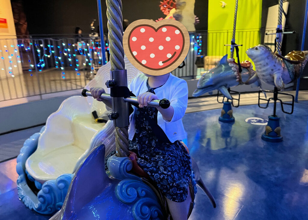 あと、館内には家族写真を無料で撮ってくれる撮影スポット(フレーム付き写真は別料金)があったり、5歳以下無料のメリーゴーランドが近くにあったり…